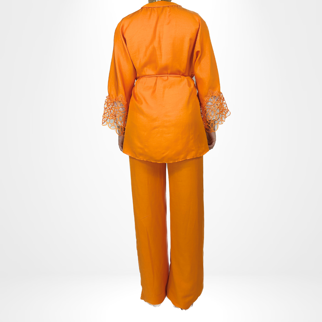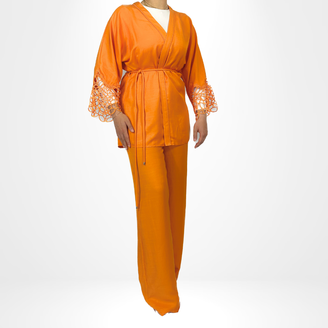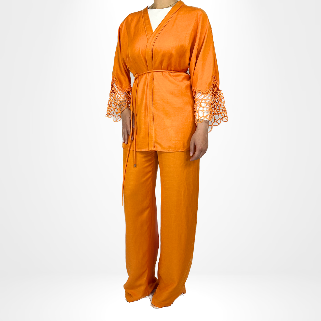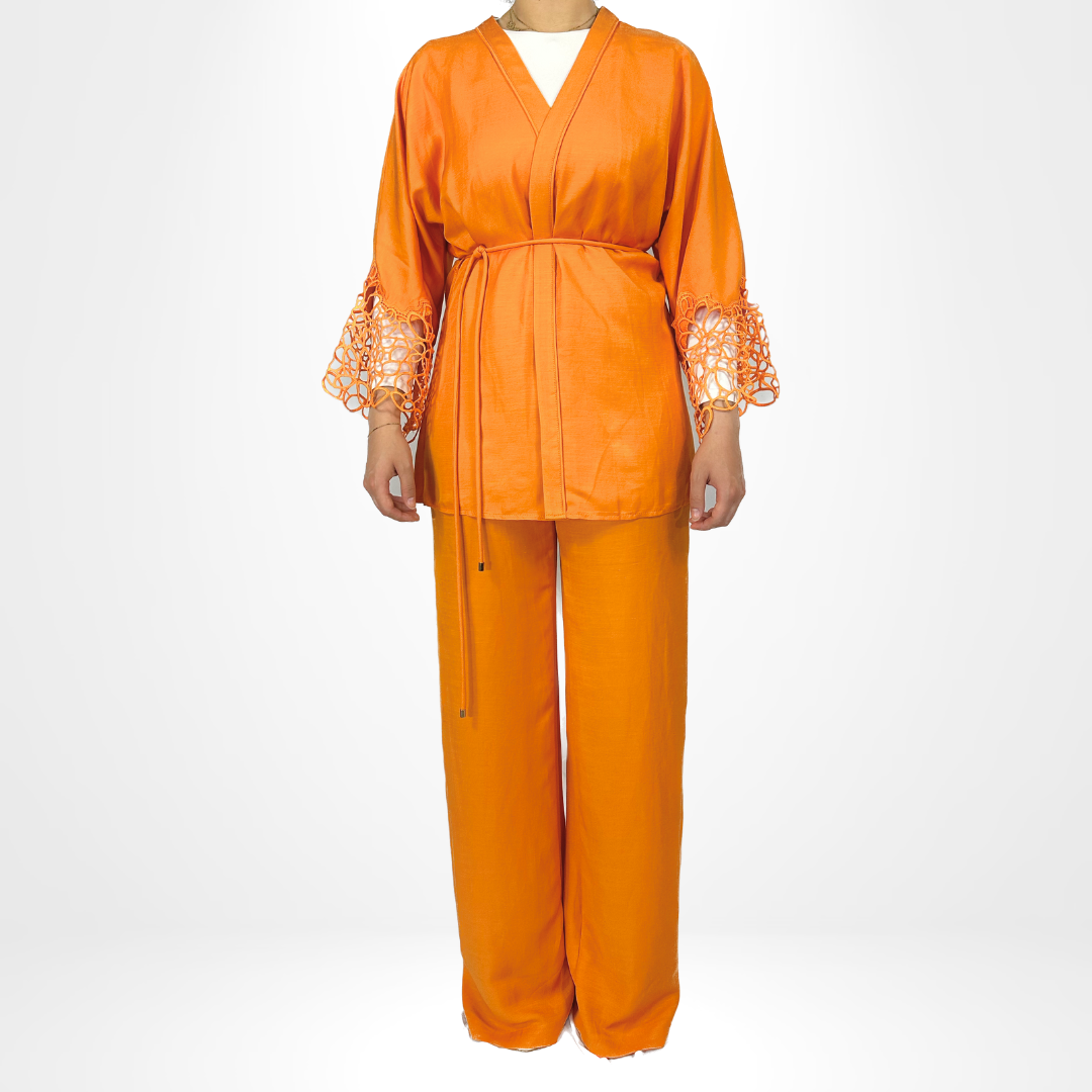 Unleash your chic style with our Amber Ensemble. This two piece set features detailed sleeves and a modest design, perfect for any occasion. Complete the look with the included tie belt. Available in multiple colors for versatile wear options. Elevate your wardrobe with Amber.